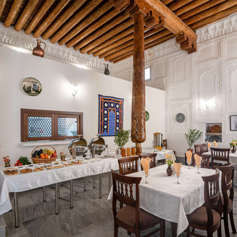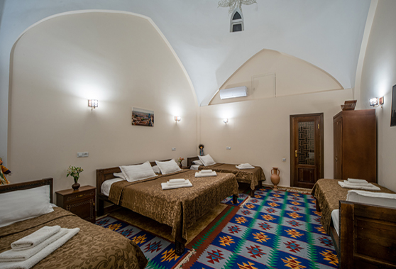 This re-purposed medressa near the west gate of the old city is absolutely full of atmosphere. Sparkling new refit, centuries old giant roof beams and attentive round-the-clock staff who can organize anything you need with a smile. Do not neglect to climb to the top of the hotel minaret at night or sunset! Take time to lounge in the courtyard loggia / verandah. Rooms have domed roves and our family-room was the converted mosque. The staff organised transport to and from Urgench that saved having to haggle with tourist savvy taxi touts (it nearly halved the price that of the best bargain I could get). Breakfast was a broad range of high quality choices and everyone found something they liked. This was really a great place to stay and at this price I think it would be hard to beat.